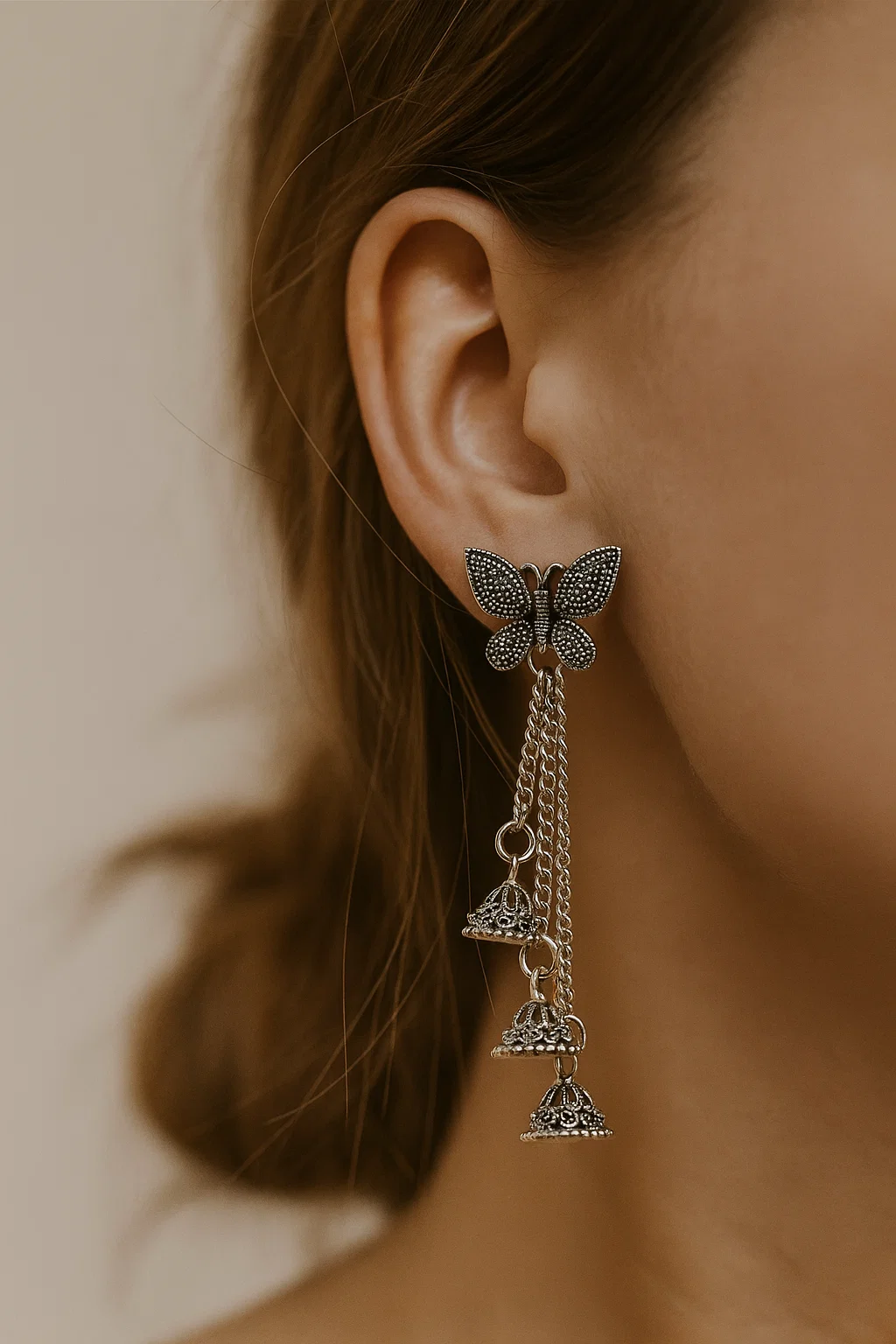 Fashion should never compromise comfort. That’s why these oxidized butterfly jhumkas are designed to be feather-light, so you can wear them from morning festivities to evening gatherings without any discomfort. The smooth finish ensures a snug fit, making them your go-to earrings for any occasion.