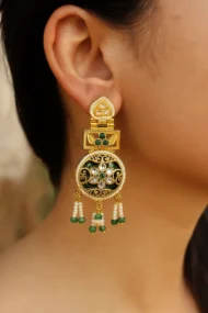 The Emerald Grace Kashmiri Earring makes an exquisite gift for brides, loved ones, or anyone who appreciates artisanal ethnic jewelry. It symbolizes grace, culture, and timeless sophistication making it a keepsake that will be treasured for years.