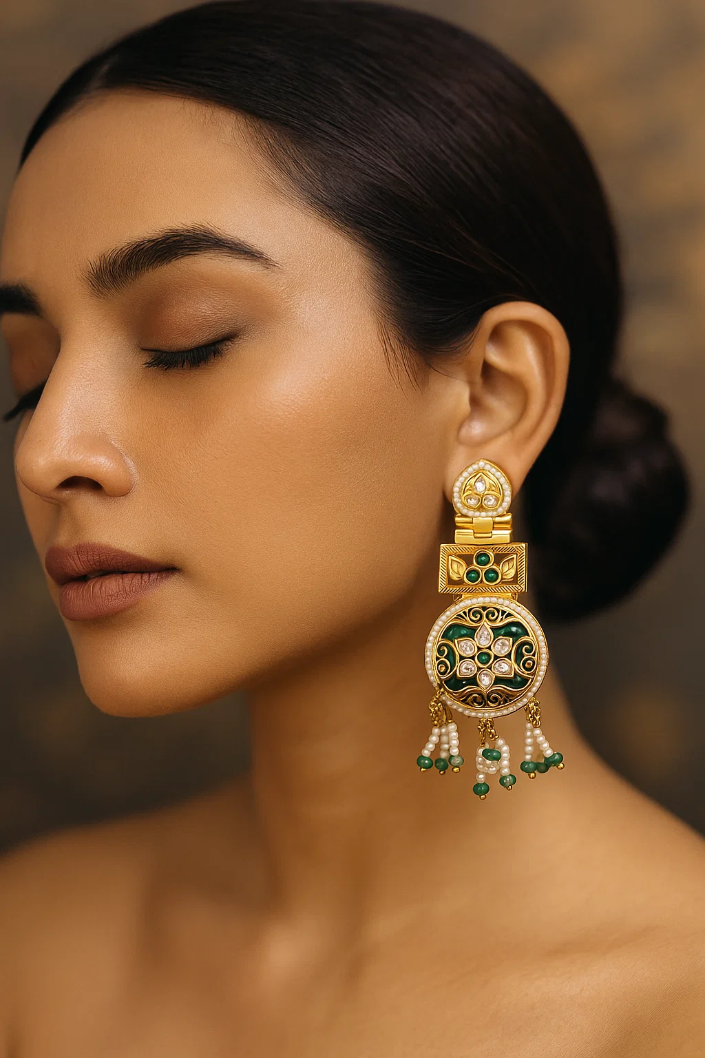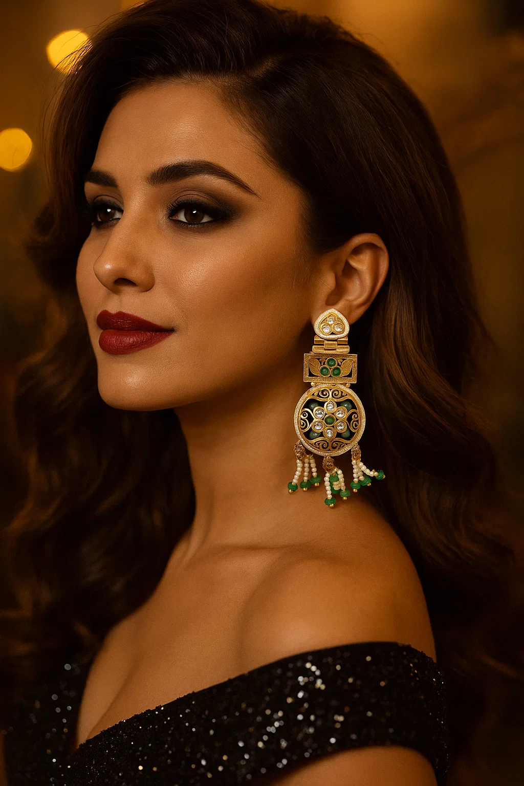 Although designed to impress, this piece is crafted for comfort. The balanced structure and soft hanging pearl-bead drops ensure an elegant drape without weighing down your ears. It is the ideal accessory for long celebrations, festive gatherings, and traditional ceremonies where you want to feel both beautiful and at ease.