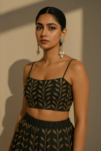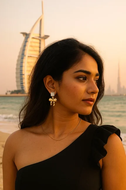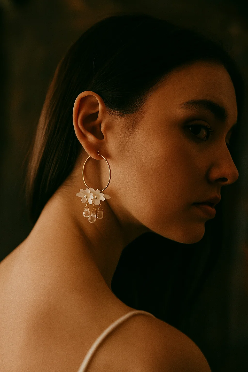Designed for women who value both comfort and beauty, these hoop earrings are incredibly lightweight, making them perfect for all-day wear. The gold-tone hoops add a touch of luxury, while the floral and crystal details bring a playful yet elegant vibe. Pair them with ethnic outfits, gowns, or even casual ensembles to create a versatile accessory that transitions seamlessly from day to night.