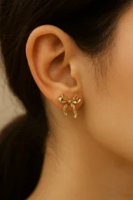 The Little Luxe Bow Earrings capture the beauty of subtle elegance with a sculpted bow motif that feels both playful and refined. Inspired by classic femininity, these dainty bow earrings add a soft, romantic touch to any look. Their minimal yet expressive design makes them perfect for everyday wear, effortlessly enhancing your natural style with a hint of golden charm.