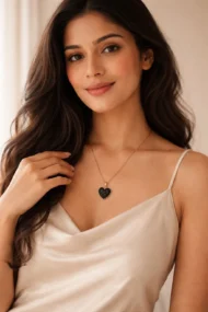 Meticulously crafted with attention to detail, the Midnight Heart Pendant is suspended from a delicate, elegant chain that enhances its luxurious appeal. The smooth finish and sparkling texture of the heart create a premium look that transitions effortlessly from daywear to evening elegance. Lightweight and comfortable, it’s designed for all-day wear without compromising on style or durability.