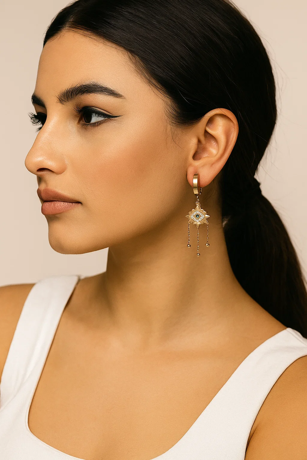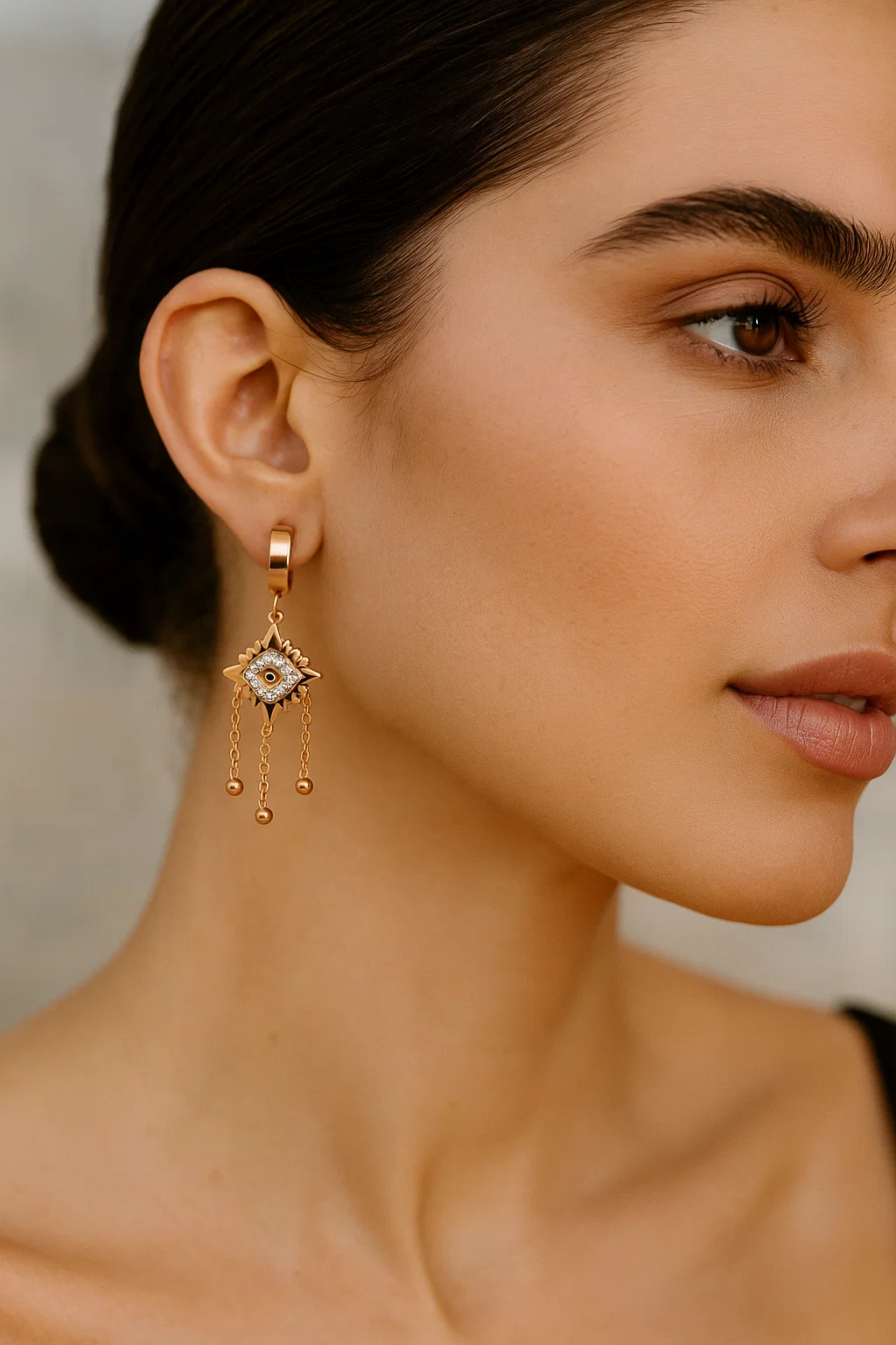 Whether you’re dressing up for an evening event or adding flair to a daytime look, the Mystic Eye Drops Earrings adapt effortlessly. Their elegant drop length elongates the neckline, enhancing your natural features without overpowering your outfit. These earrings make a thoughtful gift for birthdays, anniversaries, or festive celebrations perfect for someone who appreciates meaningful, fashion-forward jewelry. Wear them solo for a refined look or pair them with other gold accessories for a bold, layered style.