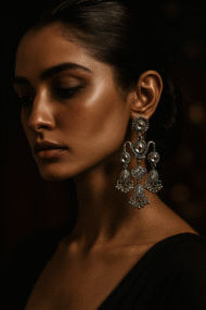 Looking for a thoughtful gift? These Oxidized Chandbali Earrings make an ideal present for loved ones who adore traditional jewelry. With their versatile design, they can be paired with almost any ethnic attire, making them a jewellery-box essential. Durable, long-lasting, and effortlessly stylish, these earrings are not just accessories; they’re keepsakes of elegance and heritage.