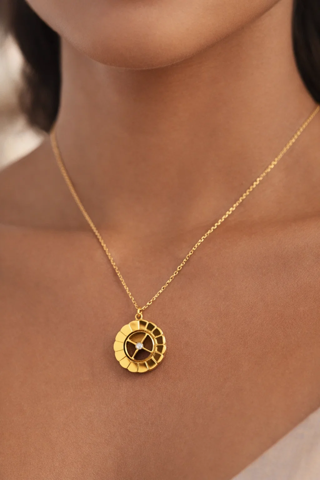 Crafted with precision and attention to detail, the Vortex Gold Pendant features a polished gold-tone structure that reflects light beautifully from every angle. The geometric spiral design frames a refined central stone, adding a subtle sparkle without overpowering the piece. Suspended from a sleek, durable chain, this pendant is lightweight, comfortable, and designed for everyday wear or special occasions.